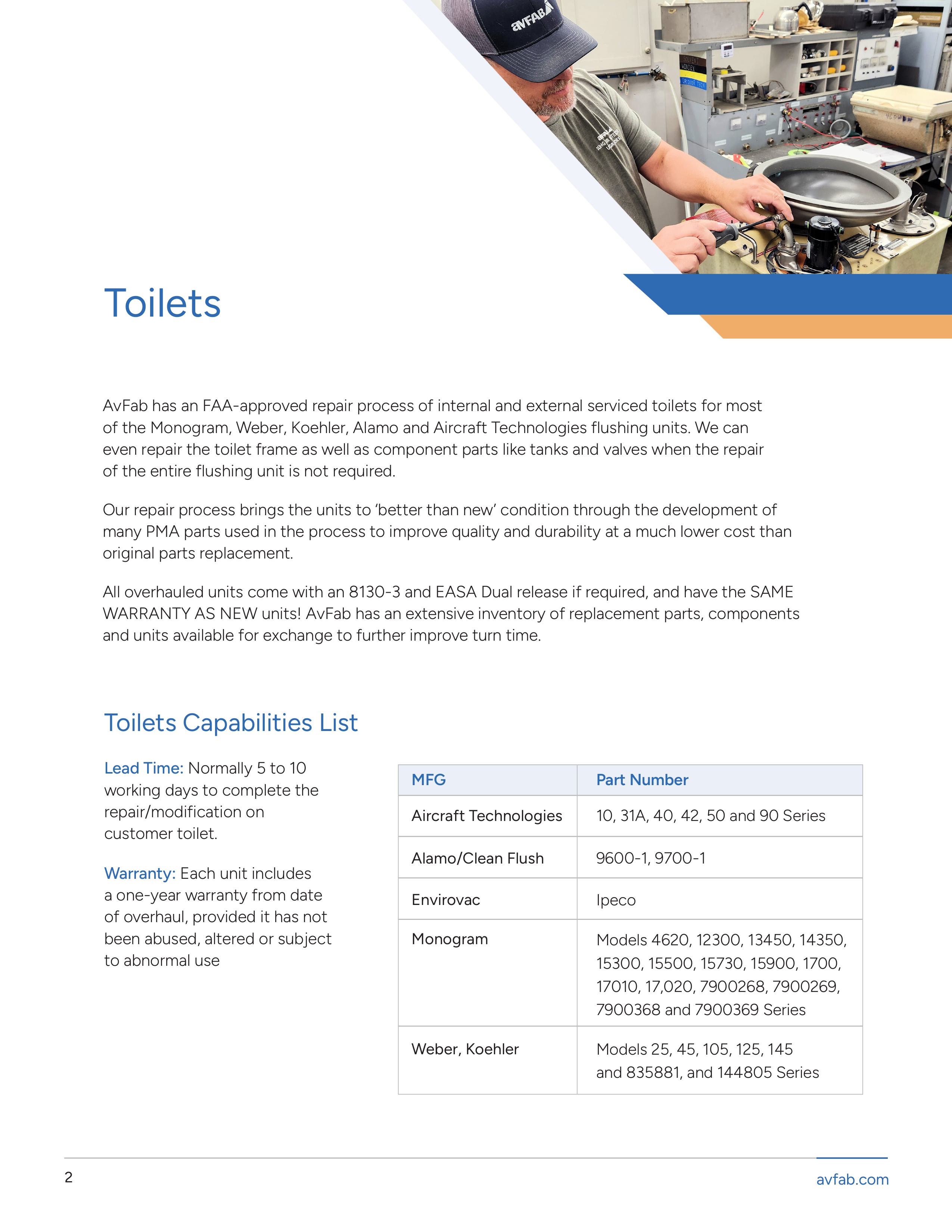 Our most-current “Capabilities List” is available at the bottom of the www.AvFab.com homepage.